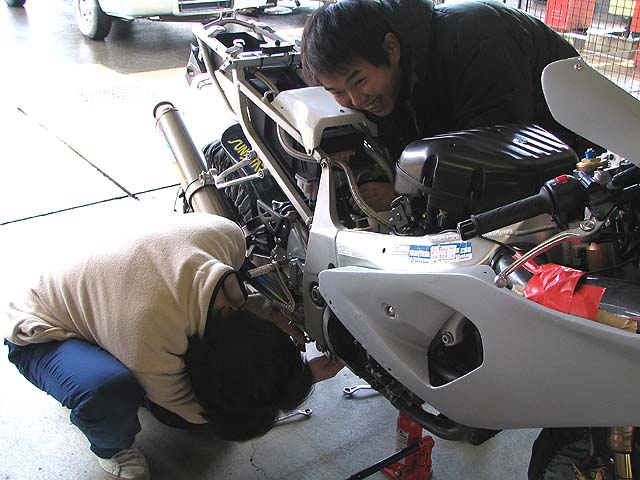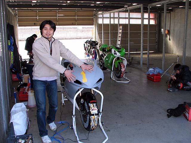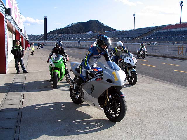 今日は仕事を休んでもてぎで練習。ウディさん達のピットに入れてもらう。
