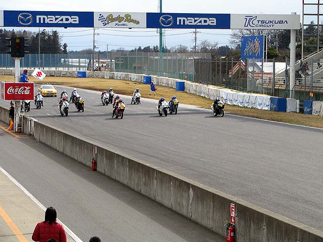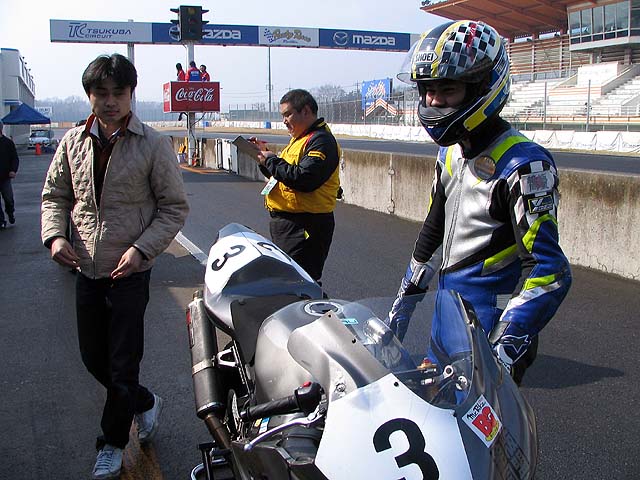 今日は筑波TT。プクダはNB、亀石さんはGSXRへ出場。