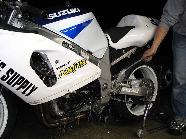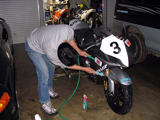 家に帰ってマシンの整備。雨の中を走ったので洗車する。