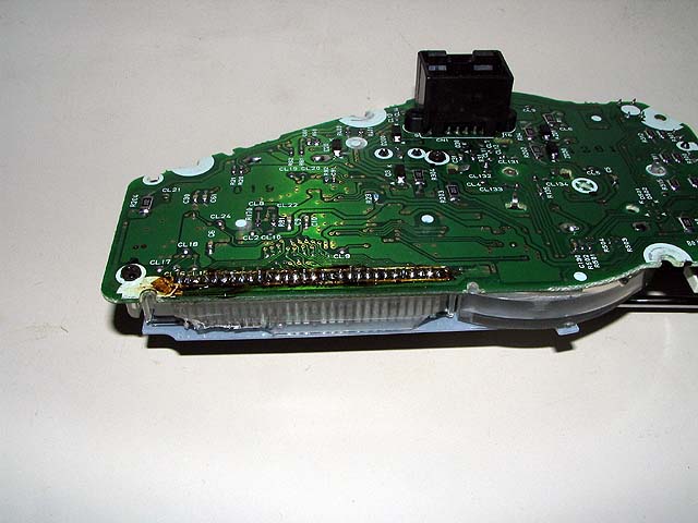 ピンが折れている部分にリード線を半田付け。非常に細かい場所なので慎重に作業する。