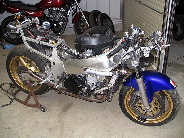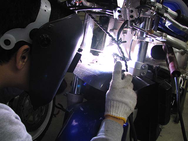 ついでに先週のレースでガチャプィンの体重が重すぎて折れてしまった宙くんR1000のカウルステーも溶接。