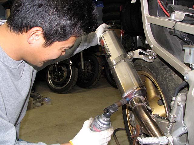 ひん曲がってしまったサイレンサーを真っ直ぐに伸ばす。