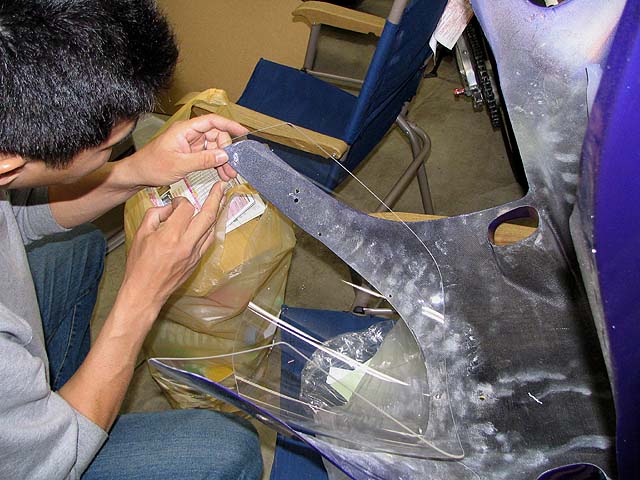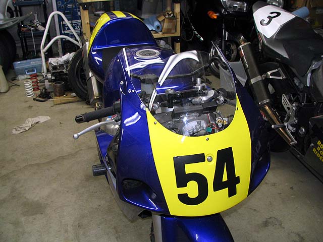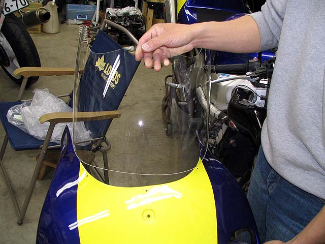 ぉお田さんからスクリーンが届いた。TZ250用で形が合わないが加工して無理矢理くっつける。