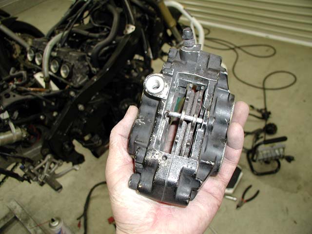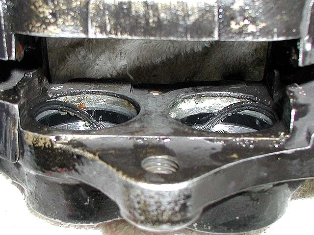 キャリパー内はこんな感じ。ここまで腐ると通常はキャリパー丸ごと新品交換デス。