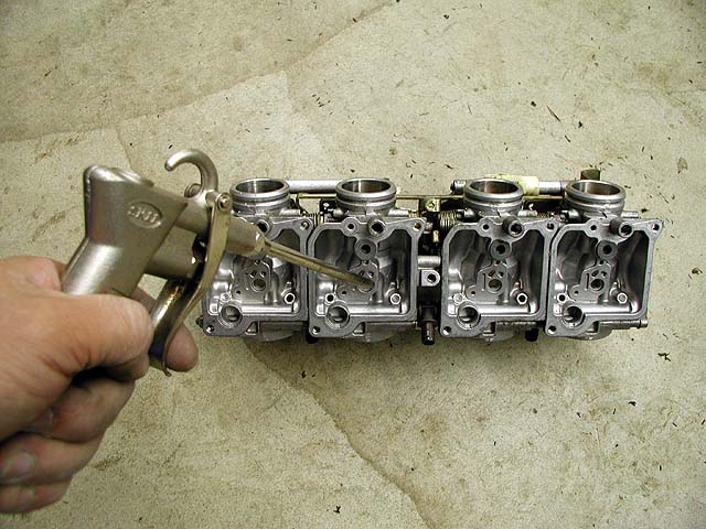 すべての穴にキャブクリーナーを流して腐食を落とす。脱脂洗浄剤で洗った後、エアで念入りに吹く