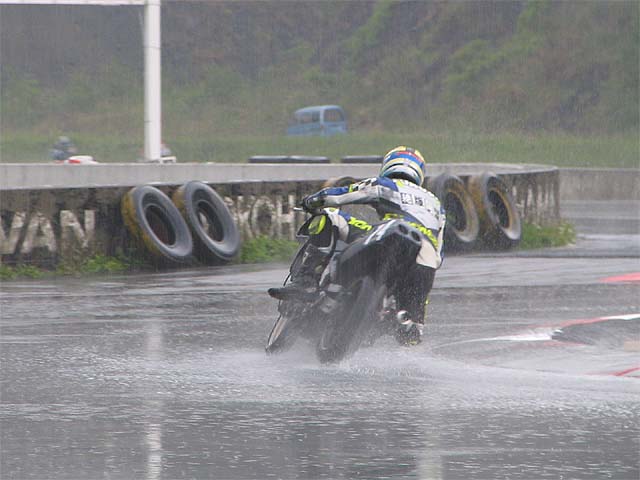 雨でエンジンが冷えて3気筒になってしまいペースダウン。結局2位でした。
