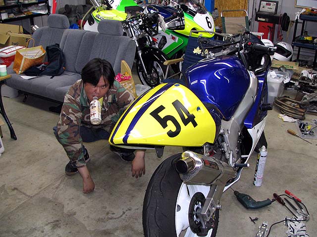 夕方熱が下がってきたのでガレージに行ったらノラ社員さんがデス号を整備していた。