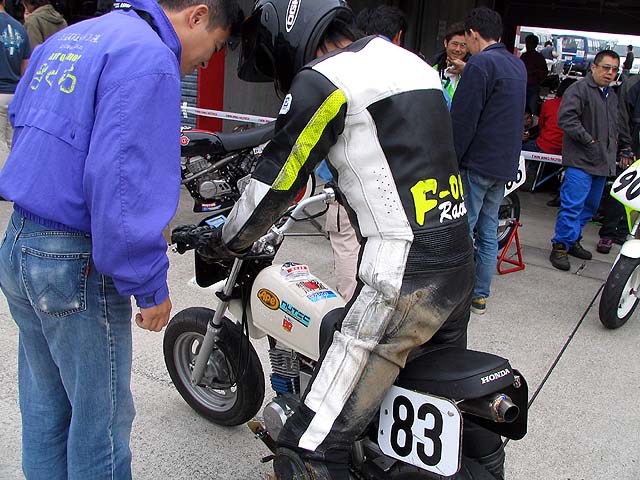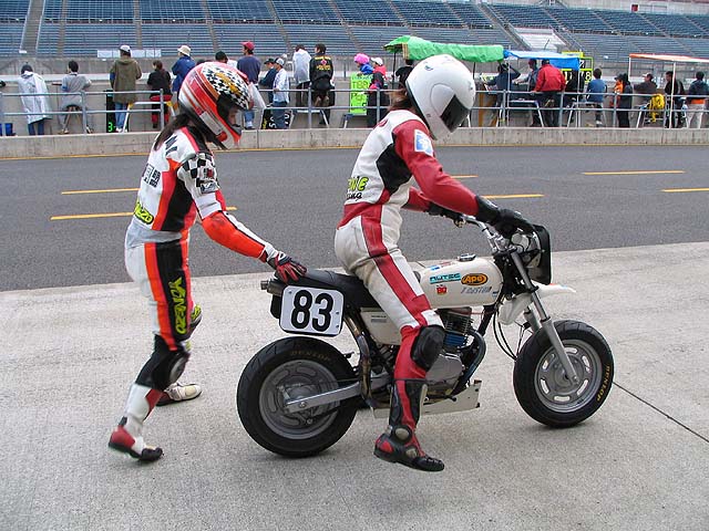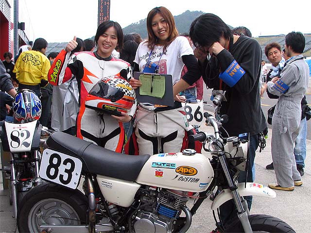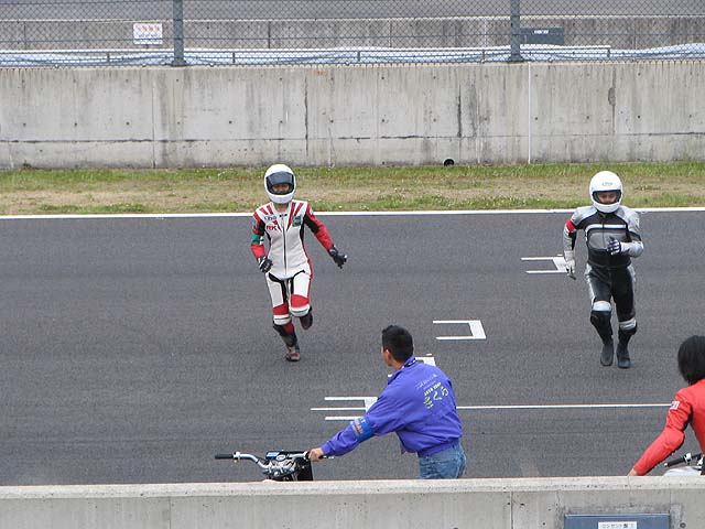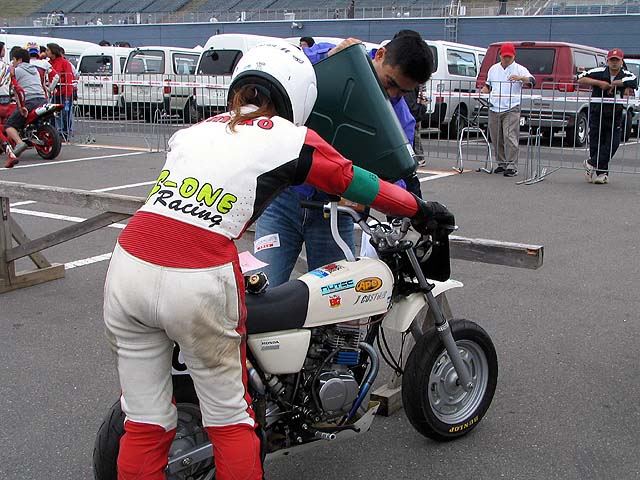 ピット前でライダーチェンジ。ベストラップはエミコ3分14秒、カズヤ15秒、プクダ16秒、ナオミン29秒。