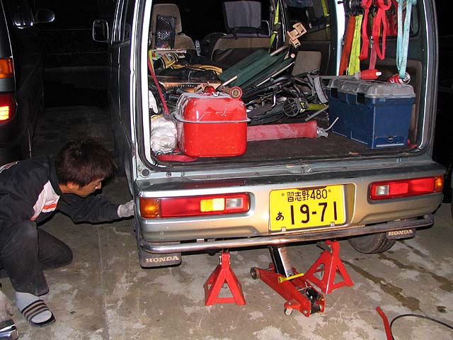 エビスサーキットは遠いのでちゃんとたどり着けるようにトランポのエンジンを点検。