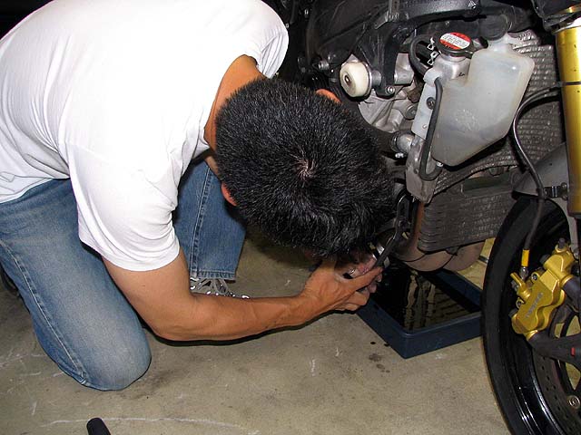 筑波TTのNBクラスに出るためGSXR1000の整備。オイルとフィルターを交換。