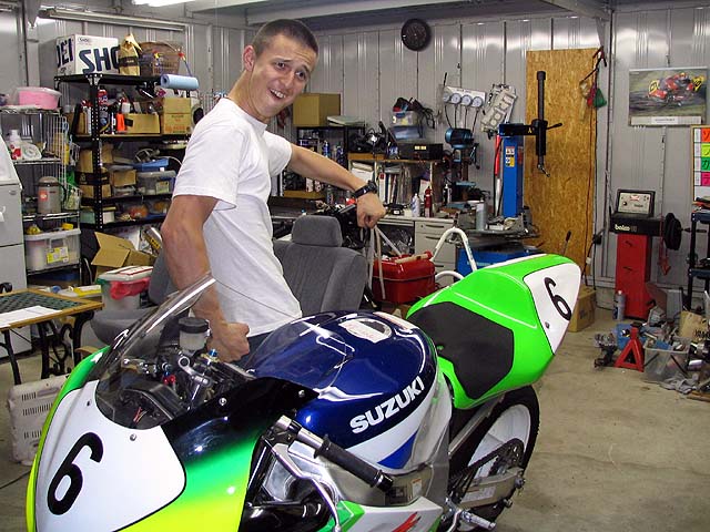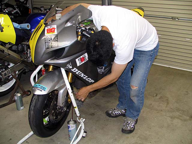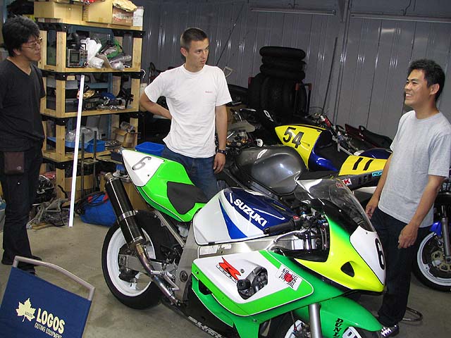 ノアさんが林さんとGSXR600を取りに来た。ノアさんは筑波TTのGSXRクラスに出場。