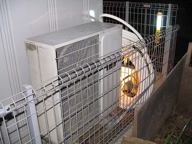 室外機を設置。業務用強力大容量タイプなので室外機も巨大。