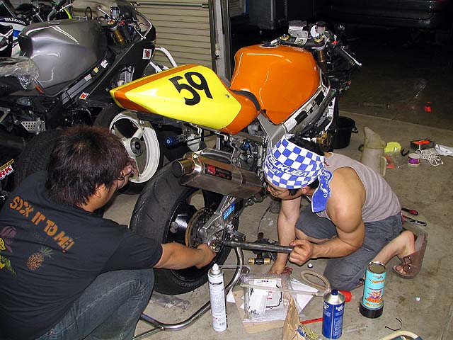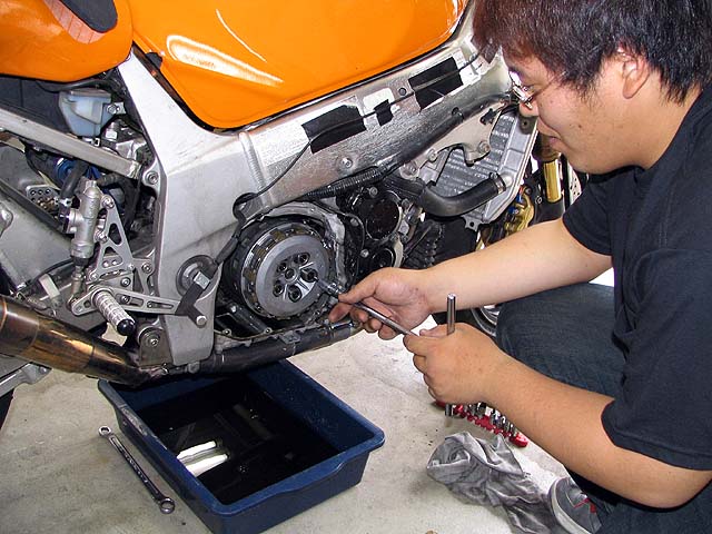 しかたなく2人だけで整備する。クラッチの調子が悪いので新品に交換する。