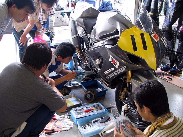走り出したらクラッチが微妙に滑っているっぽい。4周で予選を終了しクラッチ板をチェック。焼けた痕があるので交換。