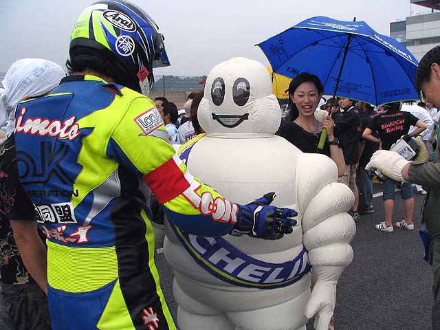 ミシュランのマスコットをみんなでどつき回す。「いじめないで〜」
