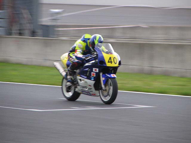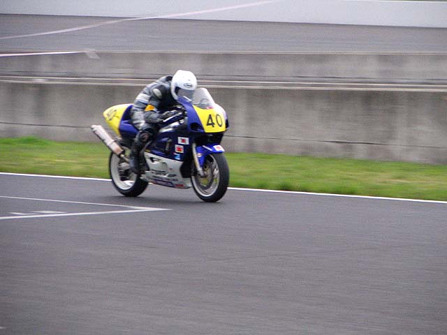 雨が降り出す前にスタート。第一ライダーγハシモは2分11〜13秒で走行。