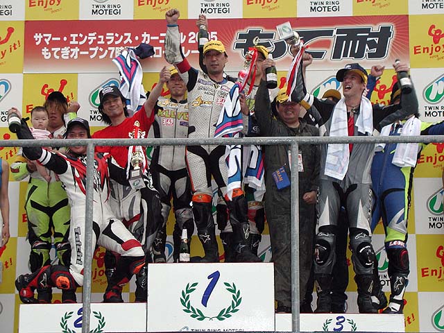 レース再開。ノアが交代なしで走って入賞を目指す。すぐ後ろまで迫ってきていた4位と5位のマシンが接触転倒。極超ラッキー!