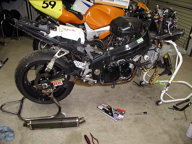 もて耐7時間を走りきったR1000を整備。外装を外して各部をチェック。