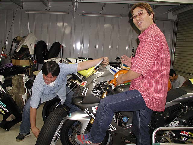 整備完了と同時にデスチームの破壊堕さんとγハシモさんが遊びに来た。来年のもて耐の話で盛り上がった。