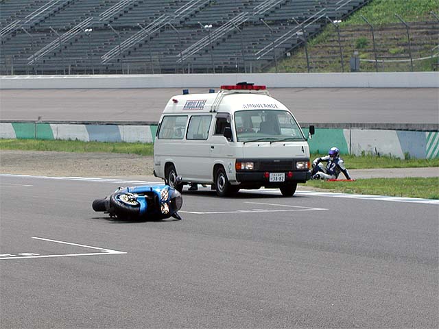 N枠でオイルが出て転倒続出。ピカピカの公道車両(しかも自走)が何台もズタボロに・・・