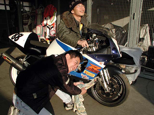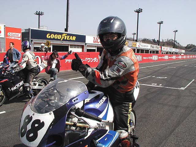 今日はもてぎ選手権。いつものGSXR三兄弟で出場。悪夢で魘されているガチャプィン佐藤。この後起こる悲劇を示唆しているようだ