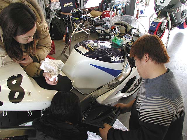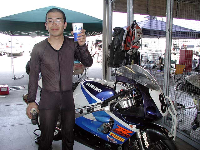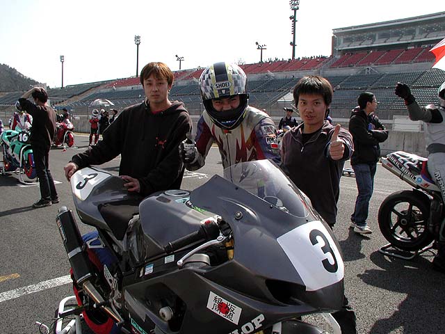 私プクダは2分8秒で予選12番。一緒にいるのは手伝いに来てくれた那須サーキット常連のコースケ君とシンゴ君