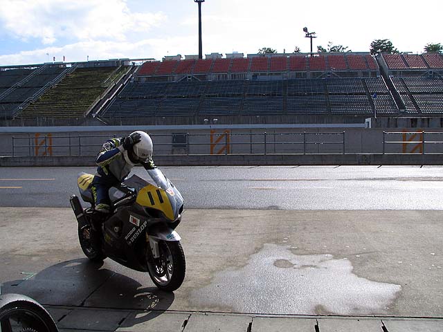 3本目走行開始直前に突然にわか雨。レインタイヤに交換して走行。