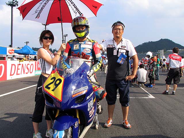 エリア選手権JSB決勝グリッドのりんてんさんとリカさん。スタート前ですがラブラブです。