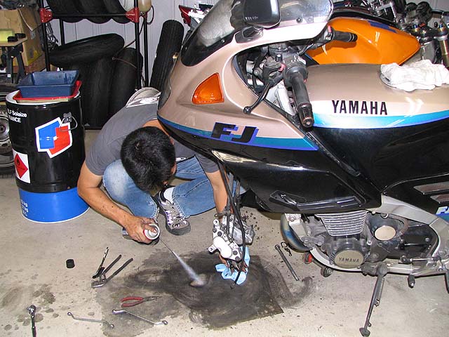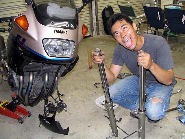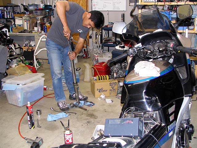 エロ兄から預かりっぱなしだったFJ1200の整備をする。まずはフロントフォークをOH。