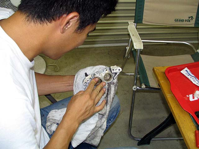 ステムに不具合があったので分解整備してからフロント周りを組み付け。もうすぐ朝だぁ〜(泣)