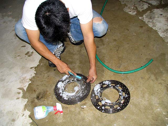 ディスクローターが油でギトギトだったのできれいに洗う。