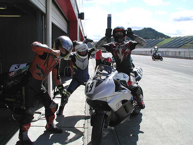 今日は仕事をサボってもてぎで練習。宙くんとツカッチも一緒に走行。