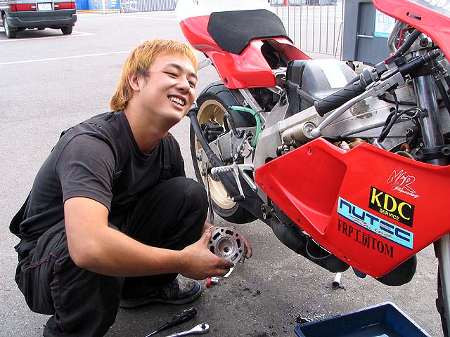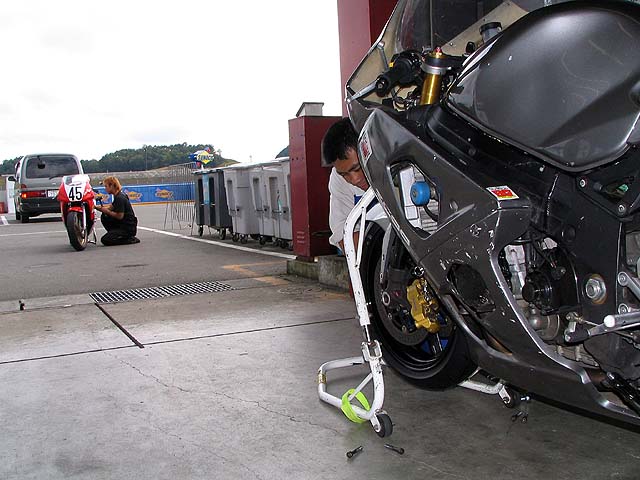 りんてんさんはタイヤウォーマーの温度計が終了〜。