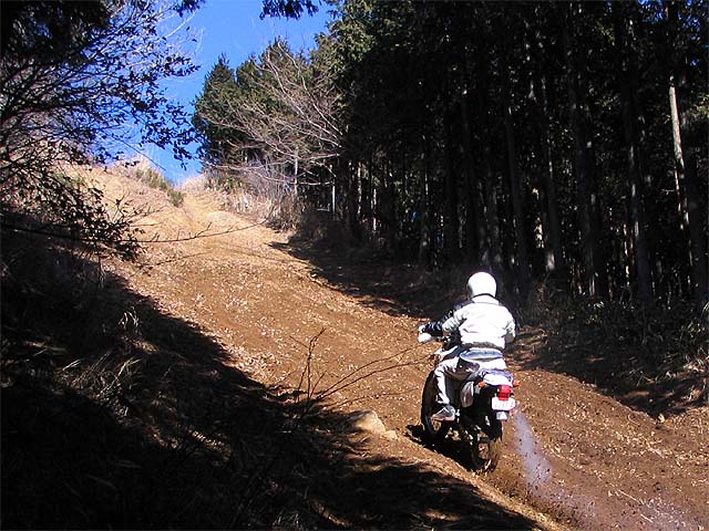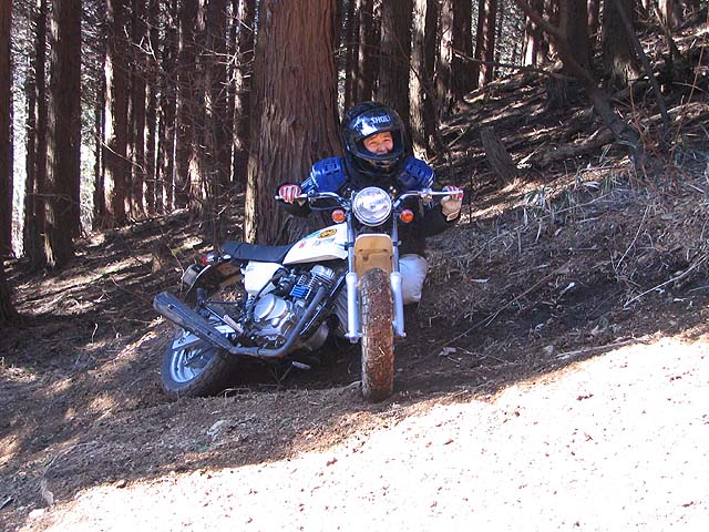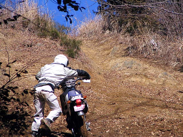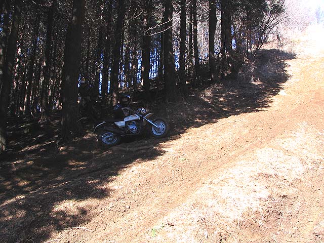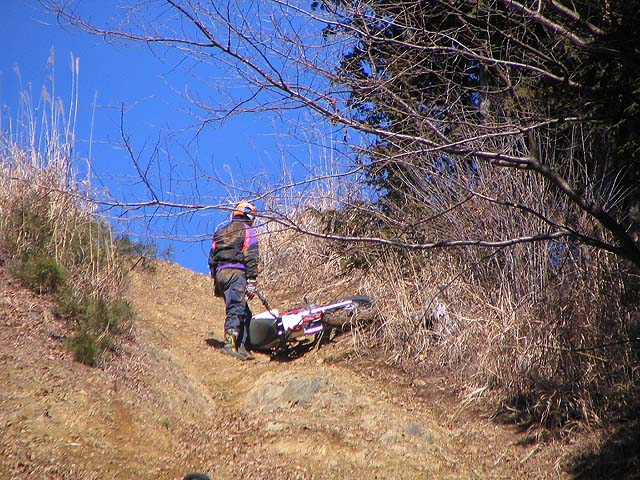 タイヤ滑って失速、坂の途中で立ち往生。(泣)