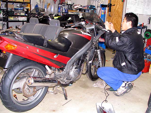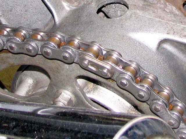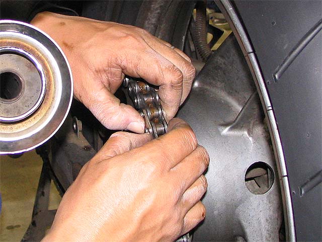 もてぎのゴミ箱からGETしたチェーンに交換。手持ちのジョイントの規格が合わなくてクリップが入らない。