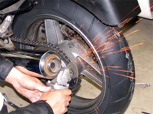 ピンの出っ張りをサンダーで削ってクリップが入る隙間をつくる。よい子の皆さんは絶対に真似しないでね〜