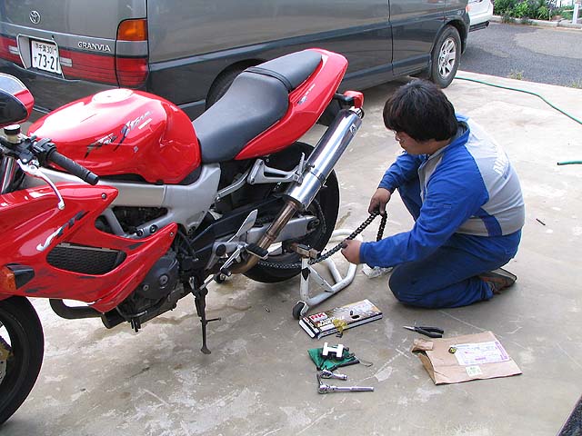 ガチャプィンがVTR1000のチェーンを交換しに来た。
