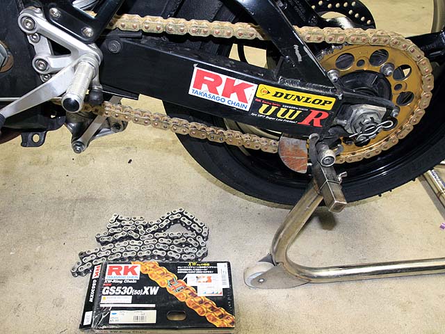 今日も誰も来ない。一人で寂しくチェーンを交換。レースチェーンは伸びるので公道用を使う。