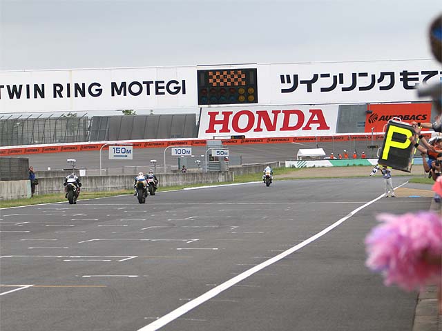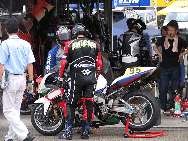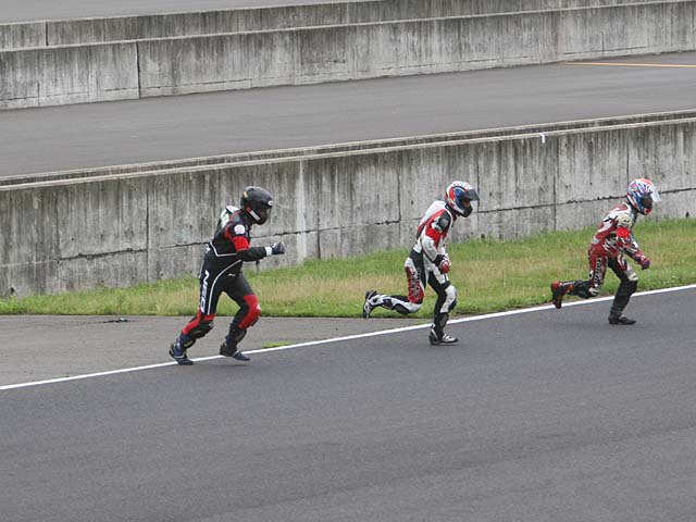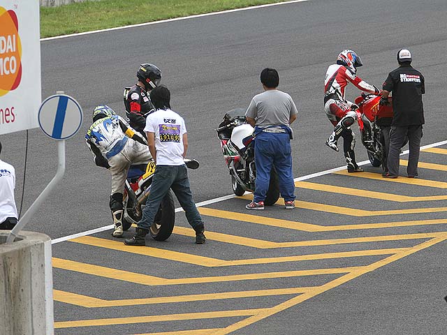 6位まで上がったところでピットイン給油&ライダー交代。雨がパラパラ降ってきた。