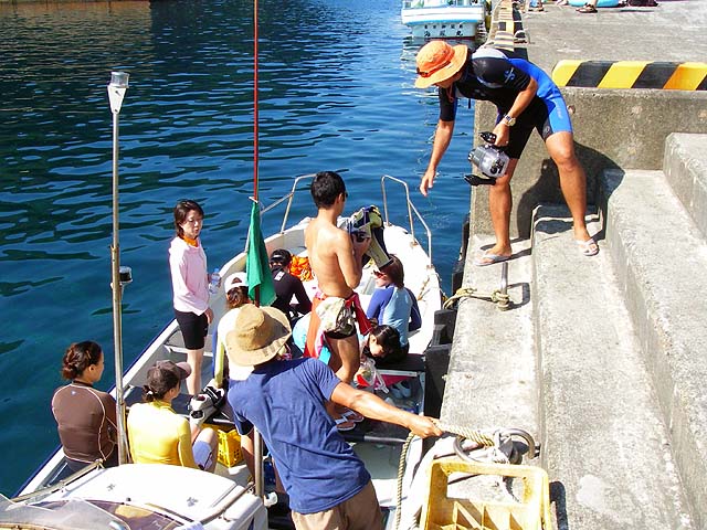ボートで先回りして、みんな一斉に海に飛び込む!