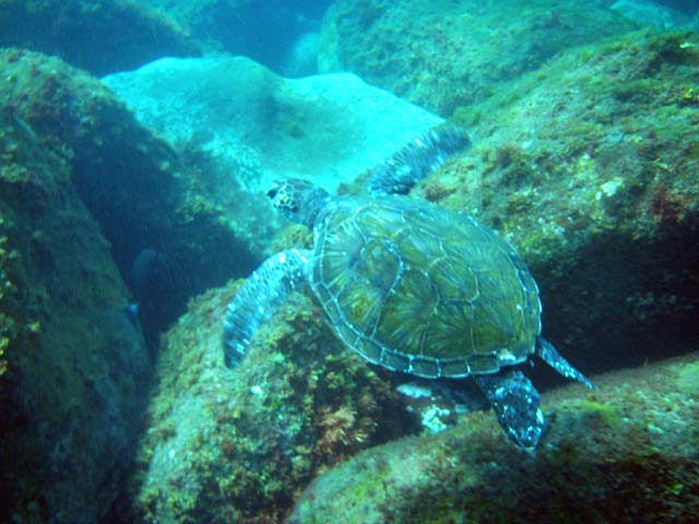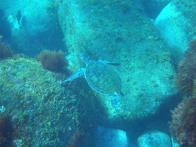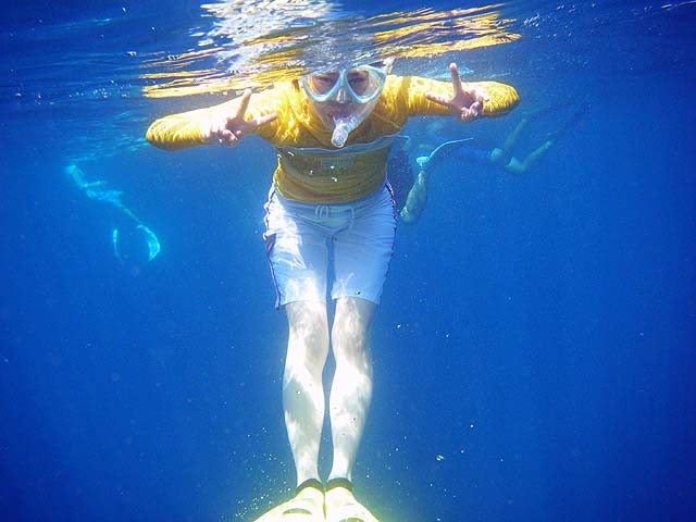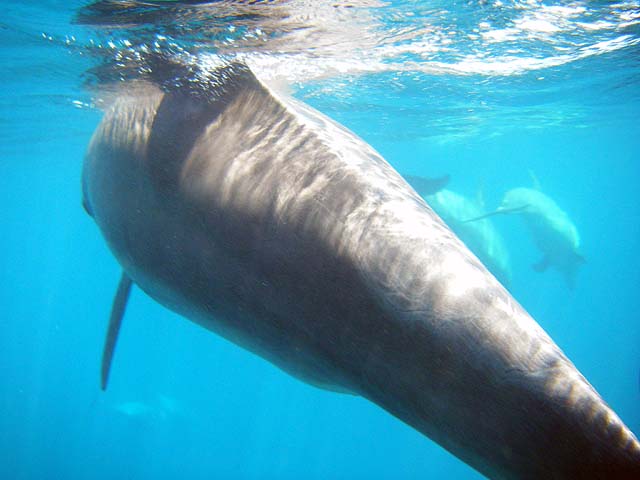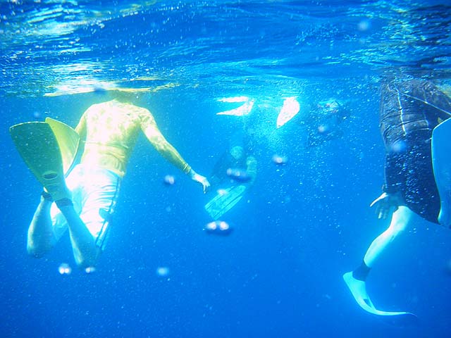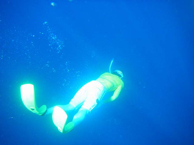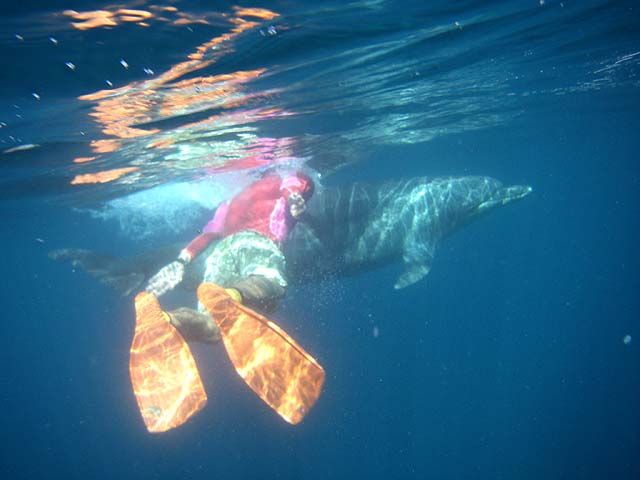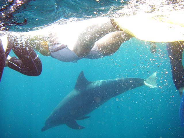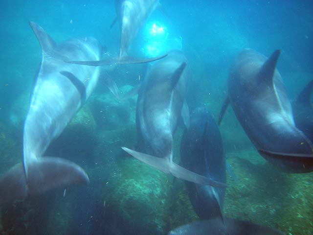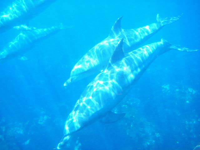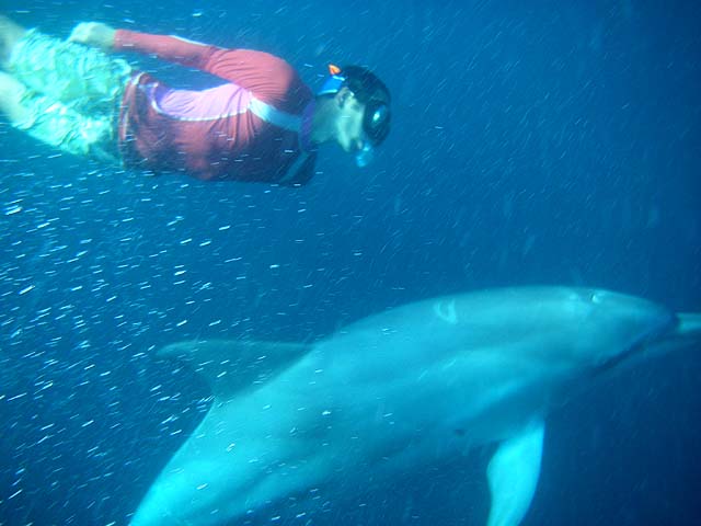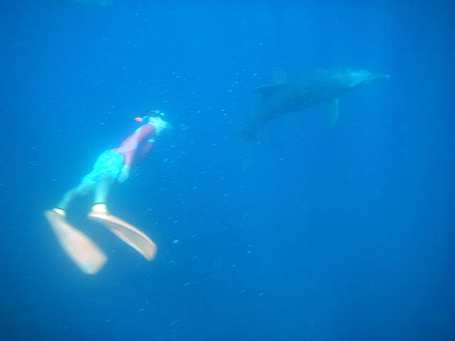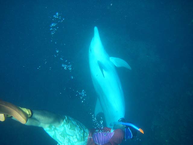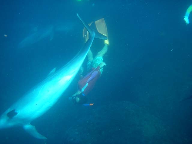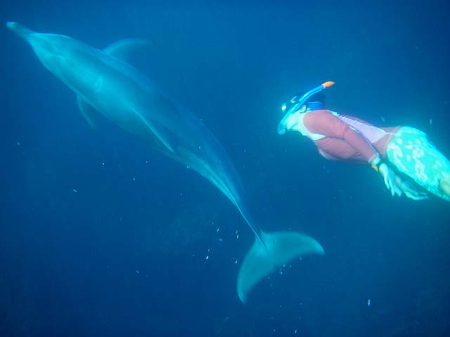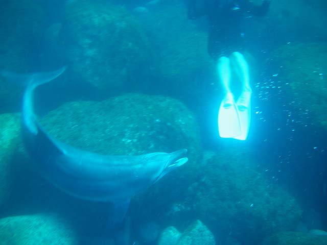 イルカのいる深さまで潜って「遊んで〜♪」とアピール。