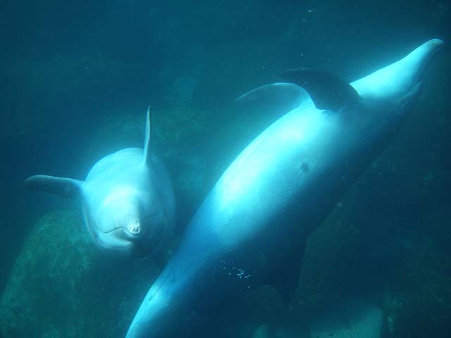 お、イルカがこちらに興味を持った様子。こっちに向かってきた〜
