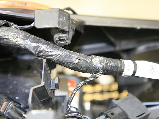 異常箇所発見。絶縁被覆に穴が開いてスパークした痕跡がある。