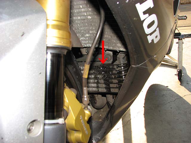 オイルクーラーのコアに何かが当たって小さな穴が。幸いにもコース上に影響は無かったようですが、反省しています。