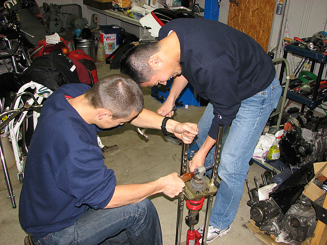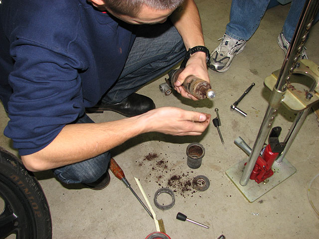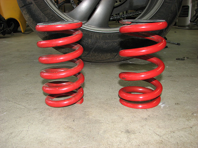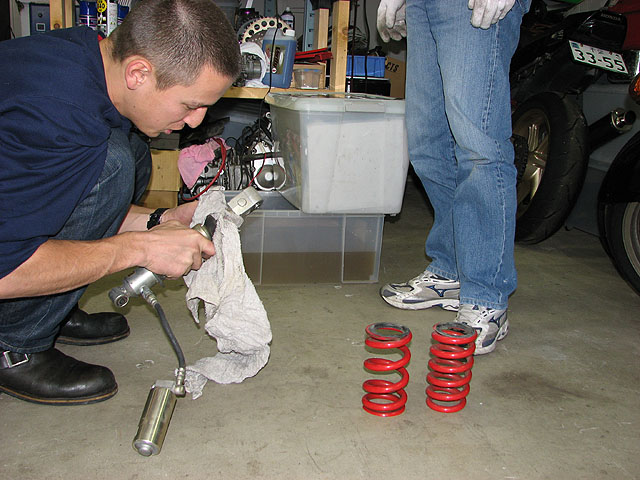 CBR600Fのサスも車体から外して分解。巻きが多いのが600F用。少ない方はノーマル用。