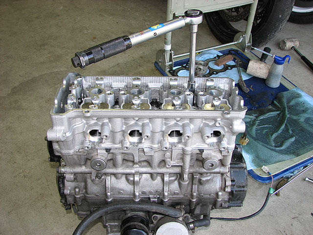 タペットのクリアランスを測定してカムを外し、シムを交換。