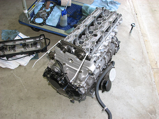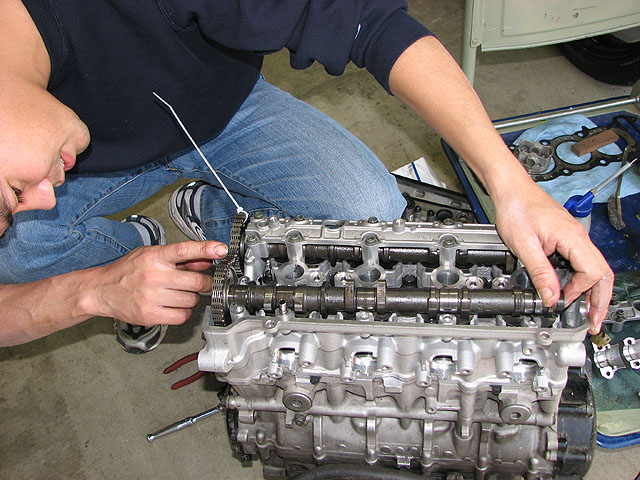 カムを乗せて規定の位置に合わせてカムチェーンを張る。