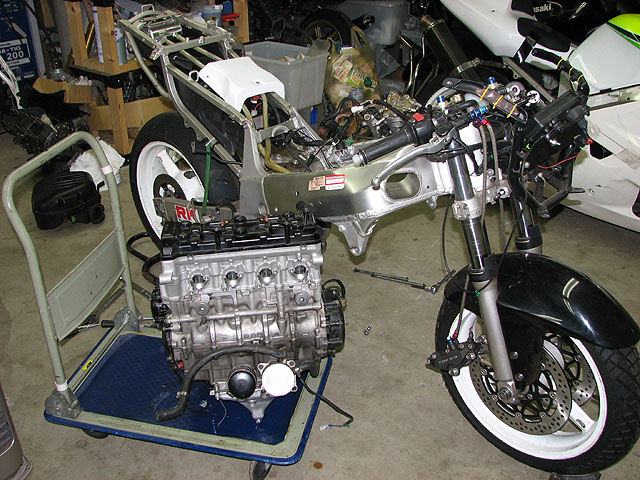 無事にエンジン始動。イオン無く絶好調。あとは外装を付ければ完成だ〜