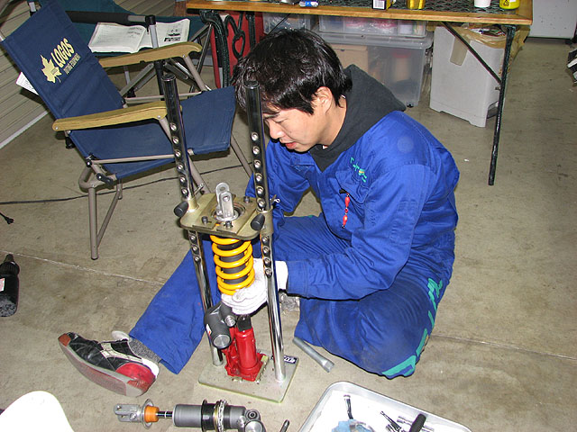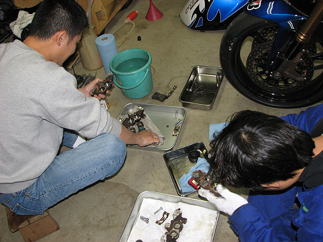 バネを外してサス本体を交換、OHへ。作業時間6時間。お疲れ様でした〜。