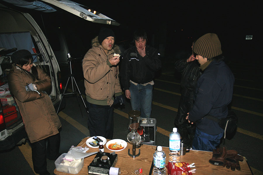 コーヒー飲んで餅食べながら夜明けを待つ。